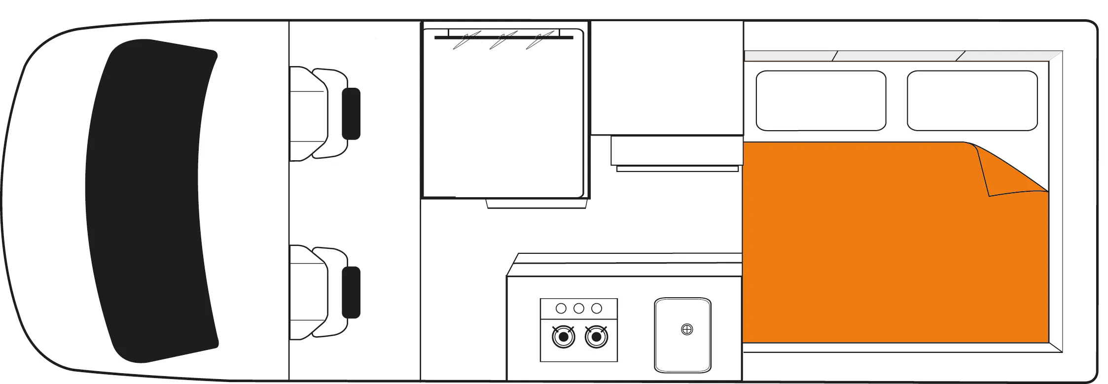 Fahrzeugausstattung: 57 L Kühl-/Gefrierschrank, Mirkowelle, Gaskocher, Waschbecken, Kaltdruckwasser, Radio, Bluetooth, GPS, USB, Klimaanlage, Heizung, Gasflasche, Tisch, tragbare Toilette, Rückfahrkamera